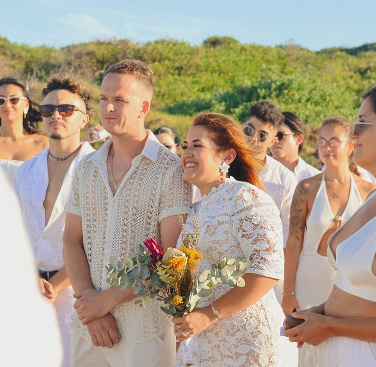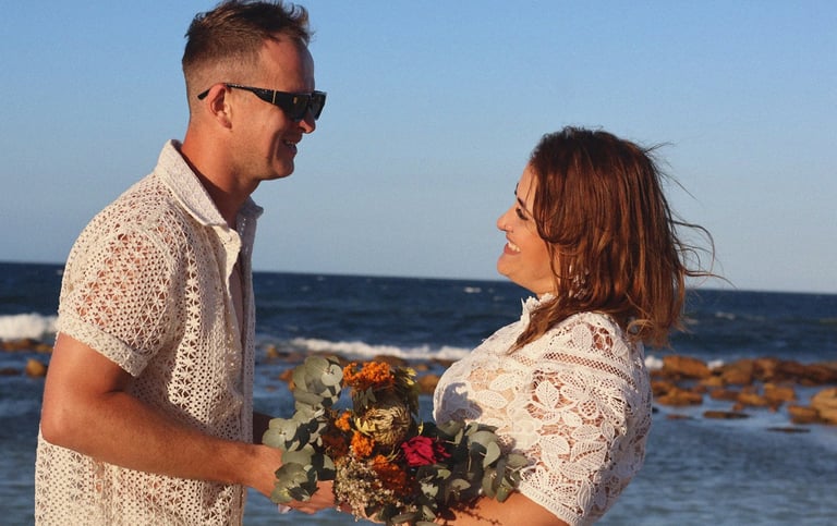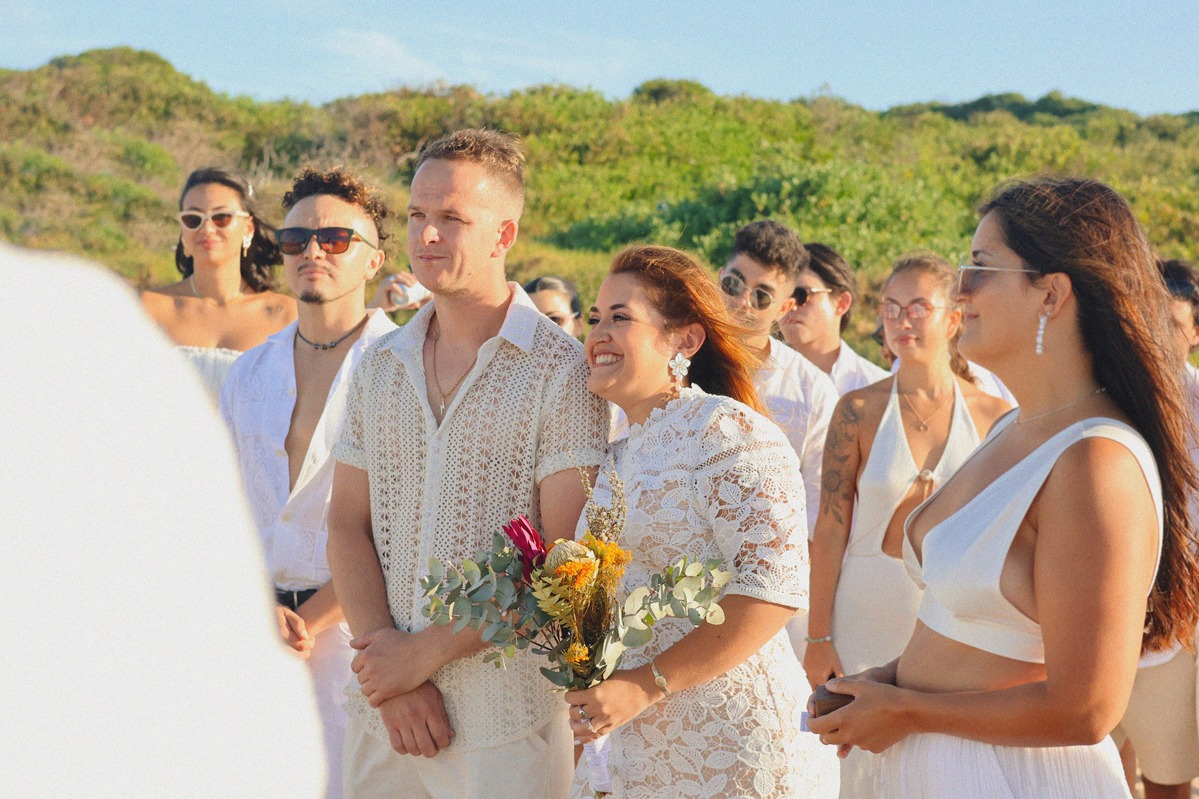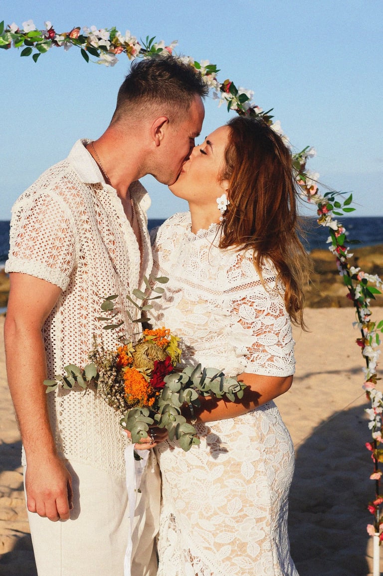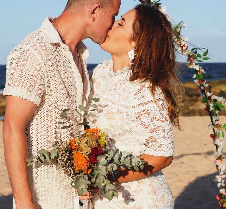 They chose a small, intimate wedding on the shores of Maroubra Beach, surrounded by close friends and the sound of the ocean. No grand production, no rigid timeline, just connection, presence, and space to breathe.